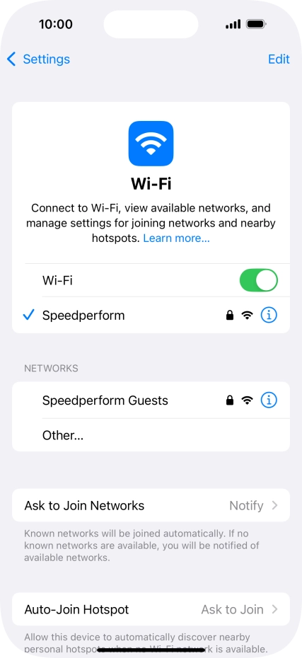 If the Wi-Fi network is password protected, a lock icon is displayed next to the name of the Wi-Fi network. You can get the password from the network provider or administrator.