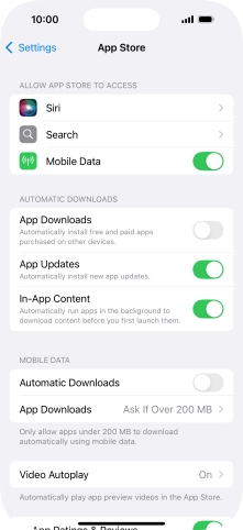 Press the indicator next to "Automatic Downloads" to turn the function on or off.