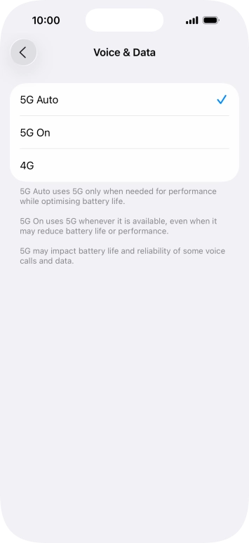 To turn on automatic switch between 5G and 4G, press 5G Auto.