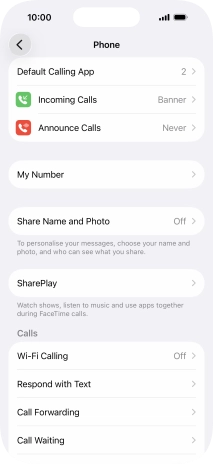 Press the indicator next to "Call Waiting" to turn the function on or off.