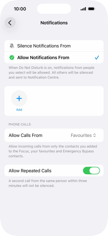 Press Add Schedule and follow the instructions on the screen to select settings for automatic activation of Do Not Disturb.