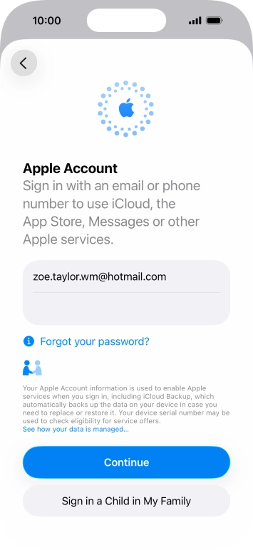 An Apple Account gives you access to a number of services on your phone such as iCloud, App Store and iTunes. To activate an Apple Account on your phone you need to set up your phone for internet.