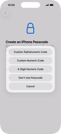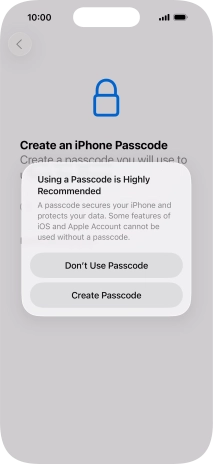 Follow the instructions on the screen to turn on use of phone lock code or press Don't Use Passcode.