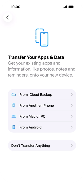 Press Don't Transfer Anything and follow the instructions on the screen to finish the activation.