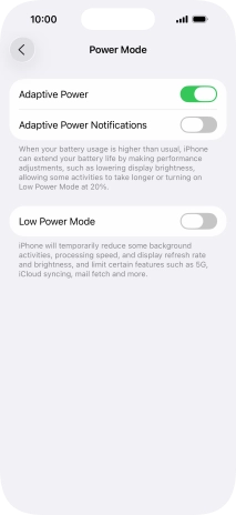 Some functions on your phone use a lot of power and therefore significantly reduce the battery life. You can reduce the power consumption by turning on low power mode.