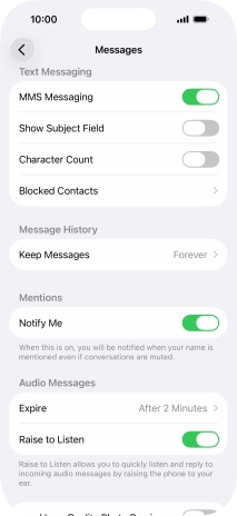 Press the indicator next to "MMS Messaging" to turn on the function.