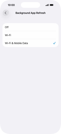 To turn on background refresh of apps using mobile network, press Wi-Fi & Mobile Data.