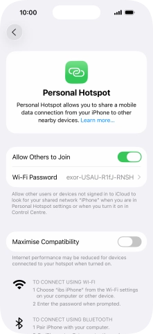 Find the list of available Wi-Fi networks and select the personal hotspot you've just set up.