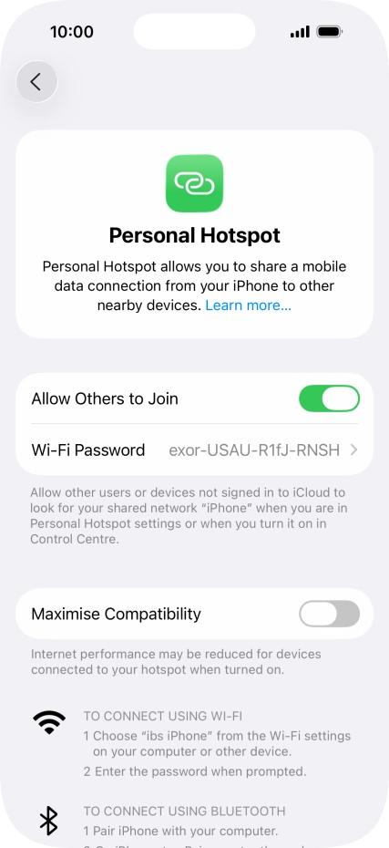 To use your phone as a personal hotspot, you need to turn on the function and establish a connection from the other device to your phone's hotspot.
