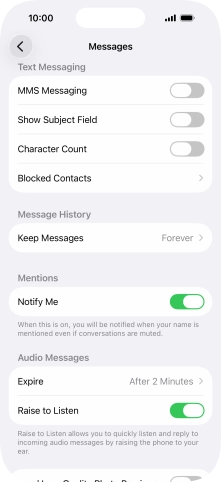 Press the indicator next to "MMS Messaging" to turn on the function.