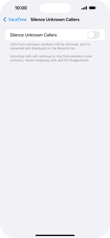 Press the indicator next to "Silence Unknown Callers" to turn the function on or off.