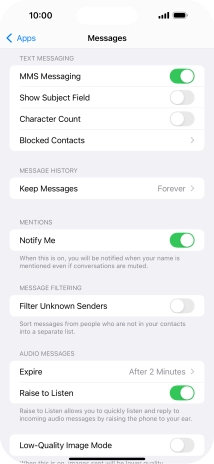 Press the indicator next to "MMS Messaging" to turn on the function.