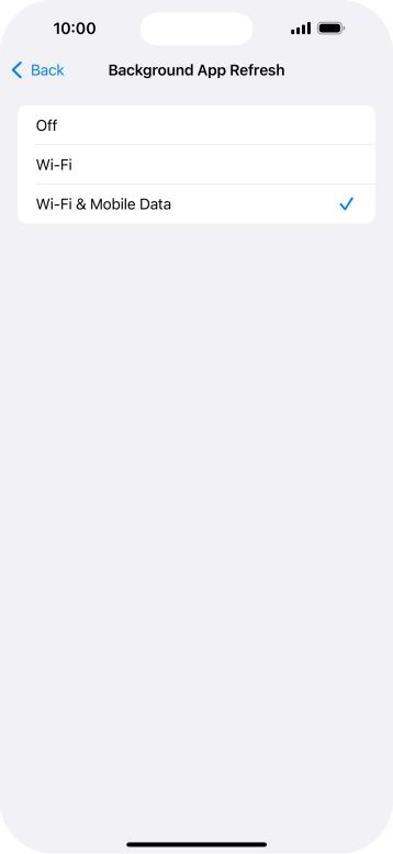 To turn off background refresh of apps, press Off.