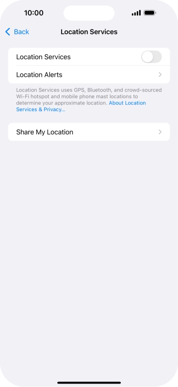 Press the indicator next to "Location Services" to turn the function on or off.