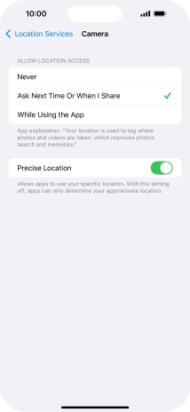 Press the indicator next to "Location Services" to turn the function on or off.