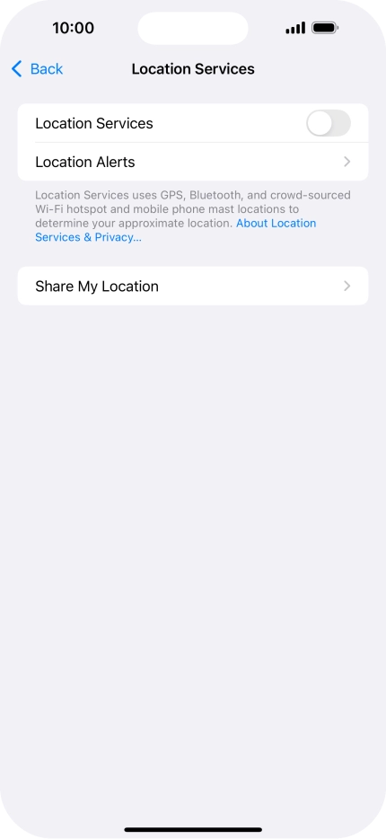 Press the indicator next to "Location Services" to turn the function on or off.