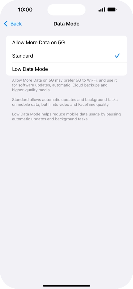 If your phone is set to high data usage, it will use a large amount of data when downloading and playing back high quality content, updating apps and more.