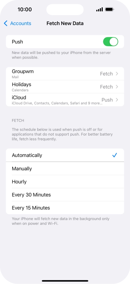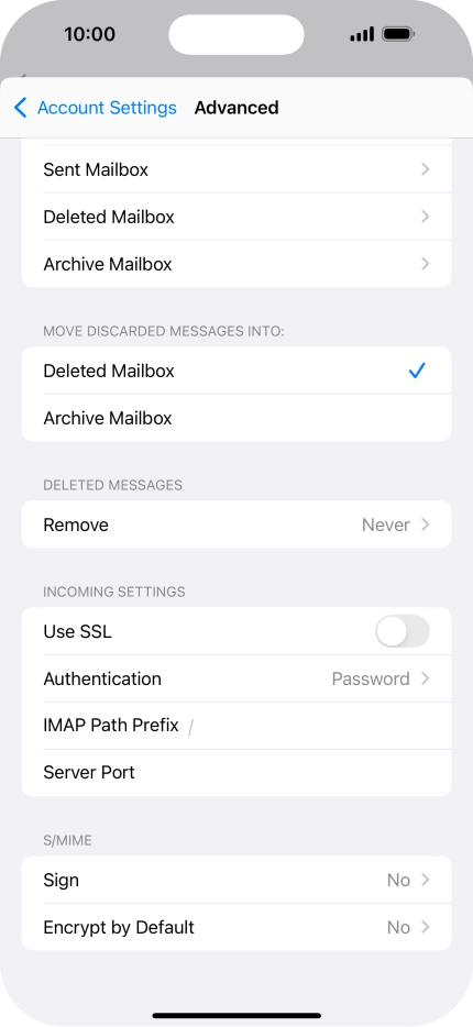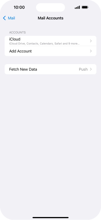 Press the required email account and follow the instructions on the screen to select settings for the specific account.