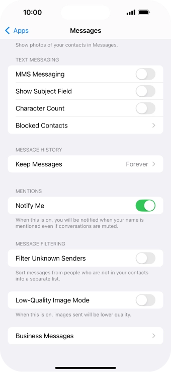 Press the indicator next to "MMS Messaging" to turn on the function.