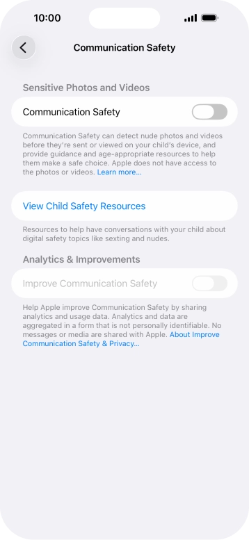 Turn Communication Safety on or off