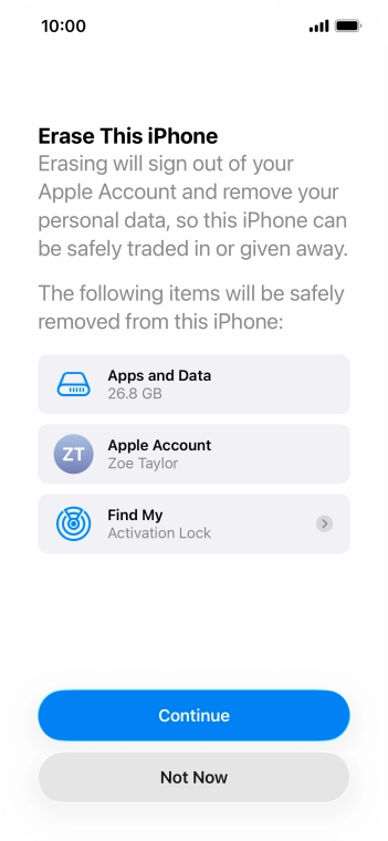 Key in the password for your Apple Account and press Turn Off. Wait a moment while the factory default settings are restored. Follow the instructions on the screen to set up your phone and prepare it for use.