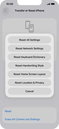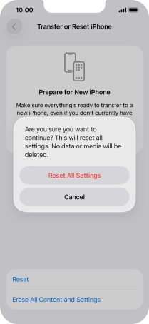 Press Reset All Settings. Wait a moment while the factory default settings are restored. Follow the instructions on the screen to set up your phone and prepare it for use.