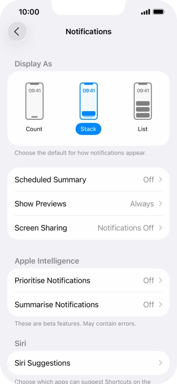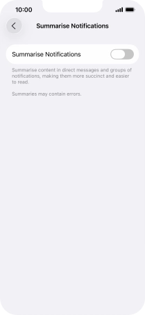 Press the indicator next to "Summarise Notifications" to turn the function on or off.