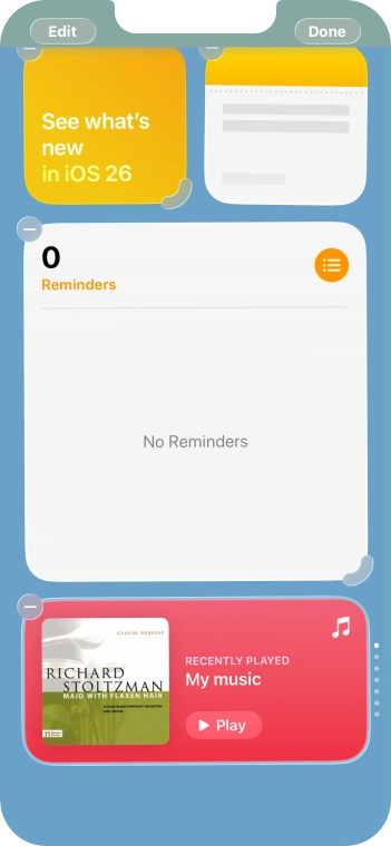 You can use widgets on your phone allowing you to get a quick overview of selected apps. You can choose between different widget sizes, organise widgets in stacks and place them on the home screen.