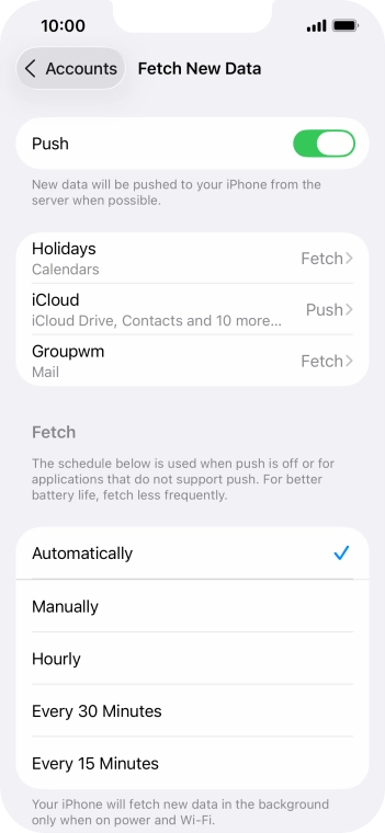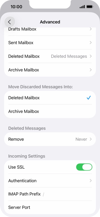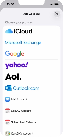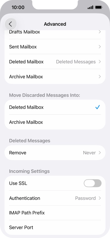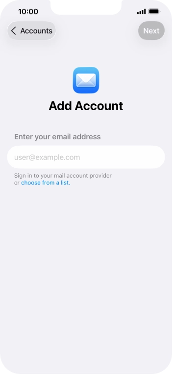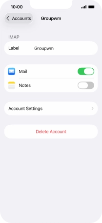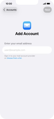 Press the required email account and follow the instructions on the screen to select settings for the specific account.