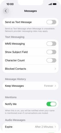 Press the indicator next to "Send as Text Message" to turn the function on or off.