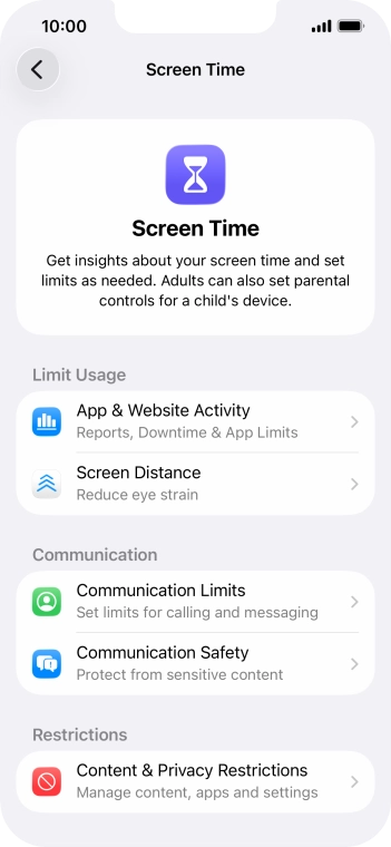 Press Screen Time and optionally select the required member of your family group.