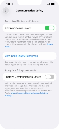 Press the indicator next to "Communication Safety" to turn the function on or off.