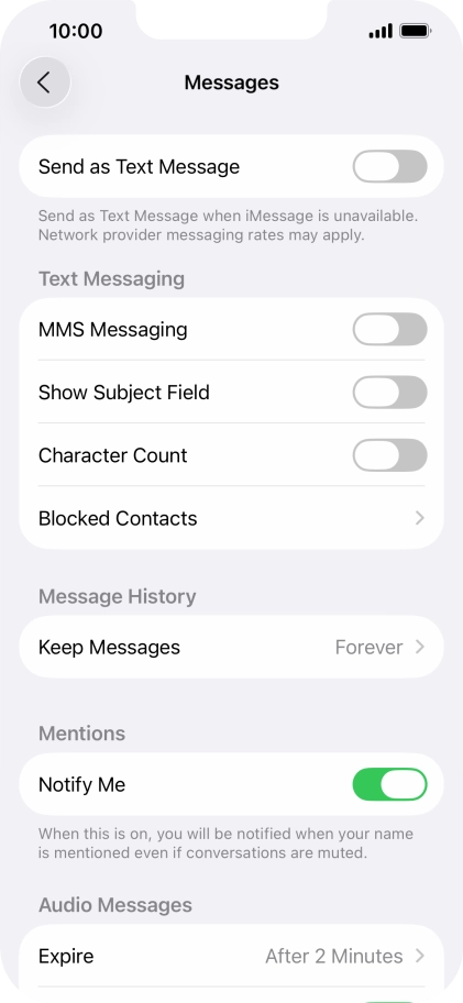 3 Turn text message alternative on or off