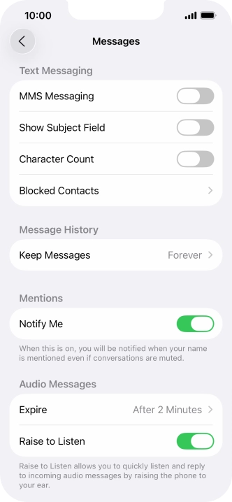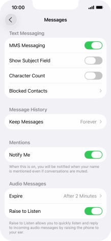 Press the indicator next to "MMS Messaging" to turn on the function.