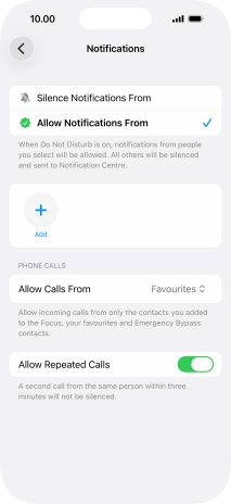 Press Apps and follow the instructions on the screen to select which apps you would like to receive notifications from when Do Not Disturb is turned on.