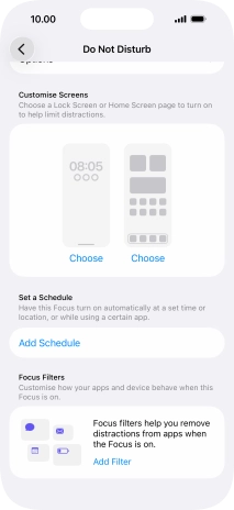 Press Add Schedule and follow the instructions on the screen to select settings for automatic activation of Do Not Disturb.