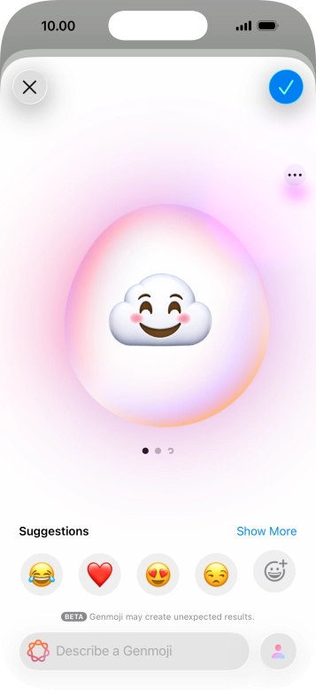 To access more functions for the selected Genmoji, press the menu icon and follow the instructions on the screen to use them.