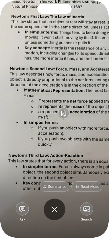 To use visual intelligence on a text, take a picture of the text, press the required setting and follow the instructions on the screen to use the function.