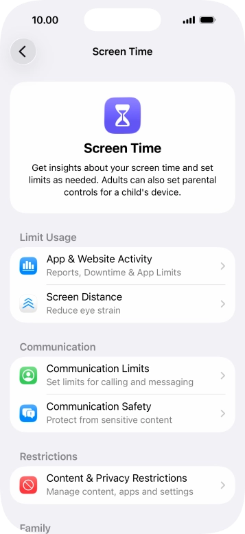 Press Screen Time and optionally select the required member of your family group.
