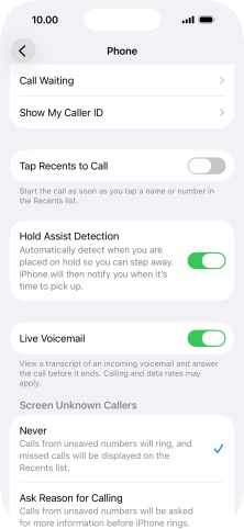 Press the indicator next to "Show My Caller ID" to turn the function on or off.