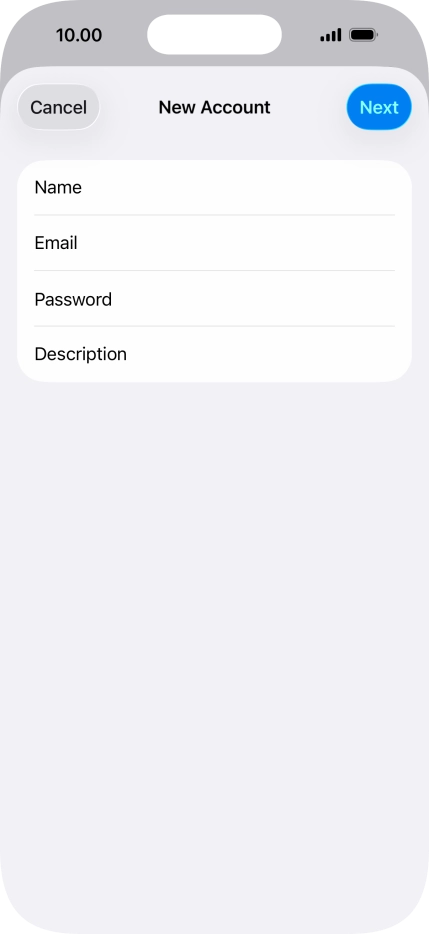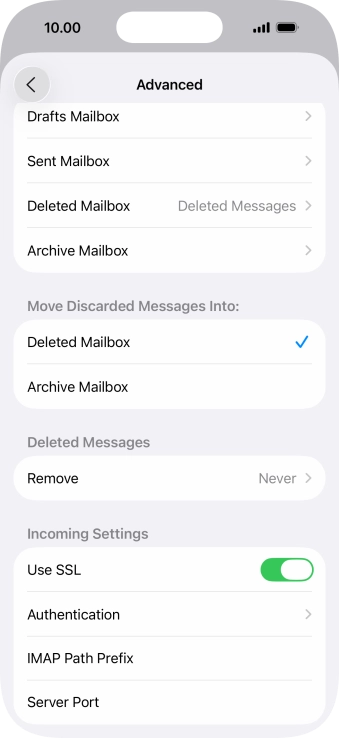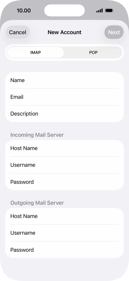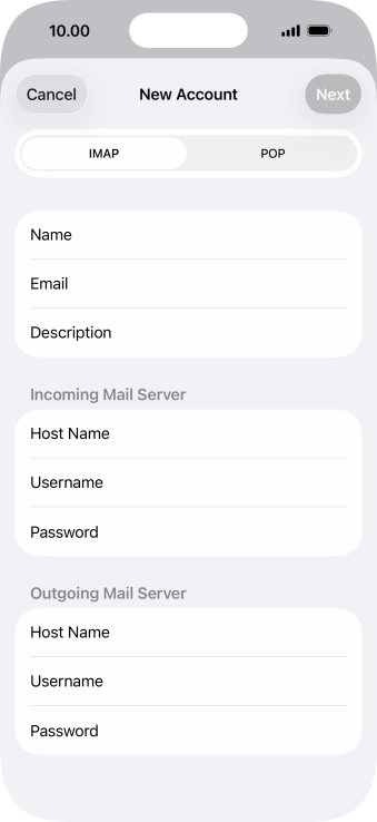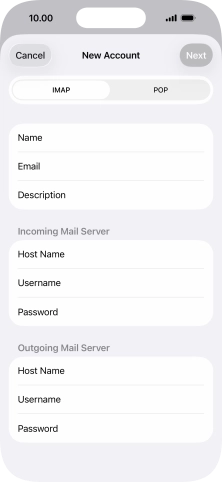 Press the required email account and follow the instructions on the screen to select settings for the specific account.