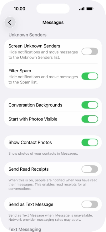 Press the indicator next to "Send as Text Message" to turn the function on or off.