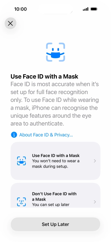 Press Get Started and follow the instructions on the screen to set up Face ID.