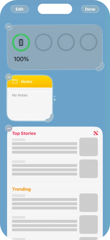 You can use widgets on your phone allowing you to get a quick overview of selected apps. You can choose between different widget sizes, organise widgets in stacks and place them on the home screen.