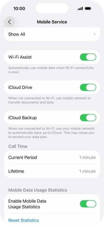 Press the indicator next to "Wi-Fi Assist" to turn the function on or off.