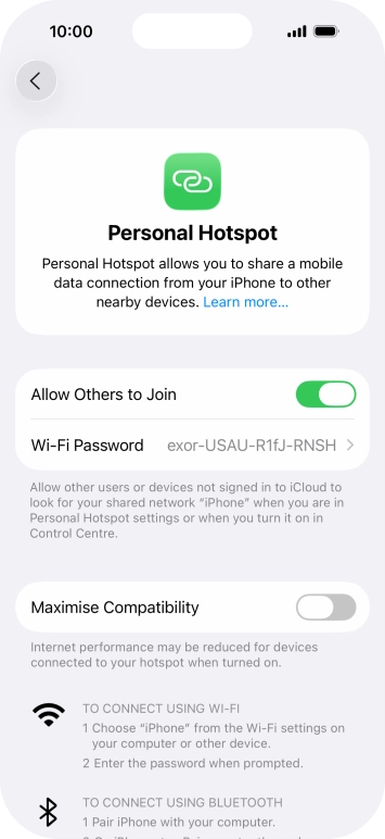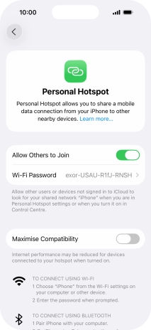 Use your phone as a personal hotspot