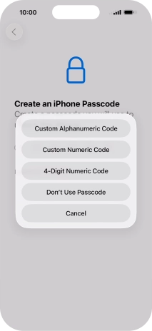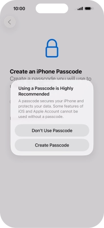 Follow the instructions on the screen to turn on use of phone lock code or press Don't Use Passcode.