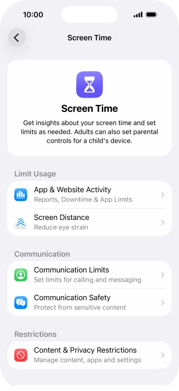 Press Screen Time and optionally select the required member of your family group.