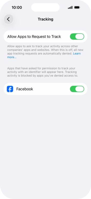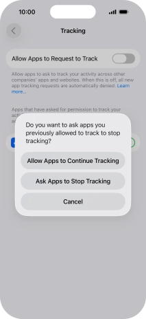 Press the indicators next to the required apps to turn tracking request for each app on or off.
