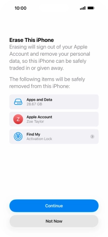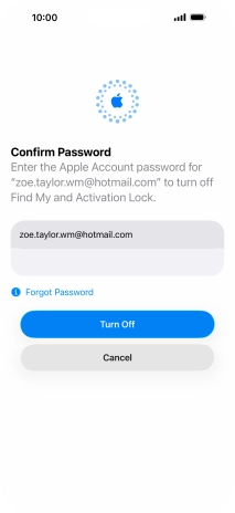 Key in the password for your Apple Account and press Turn Off. Wait a moment while the factory default settings are restored. Follow the instructions on the screen to set up your phone and prepare it for use.